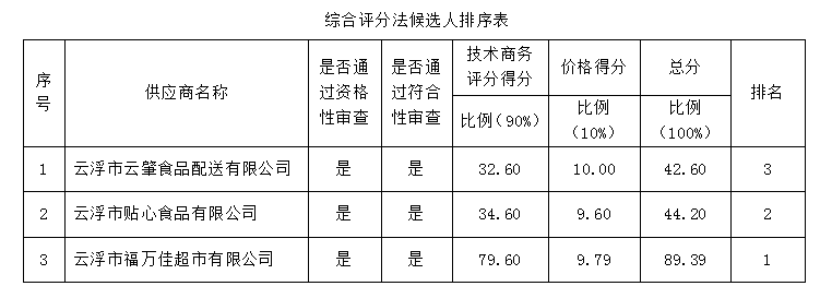 1.成交供應(yīng)商名稱:云浮市福萬佳超市有限公司